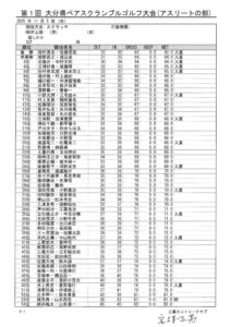 第1回大分県ペアスクランブルゴルフ大会成績表(アスリートの部)